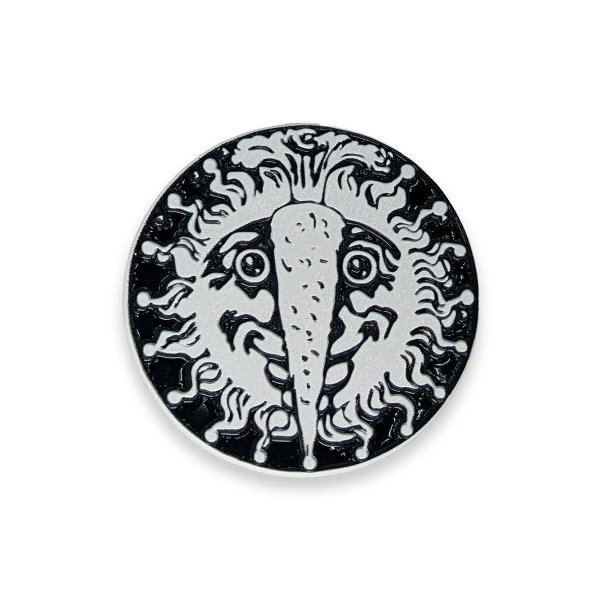 Pinneke met het stichtingszegel van Stichting de Peeënstekers. Het pinneke heeft een doorsnede van 40 mm, is wit met zwart emaillen en is op de achterkant voorzien van één pin met sluiting.