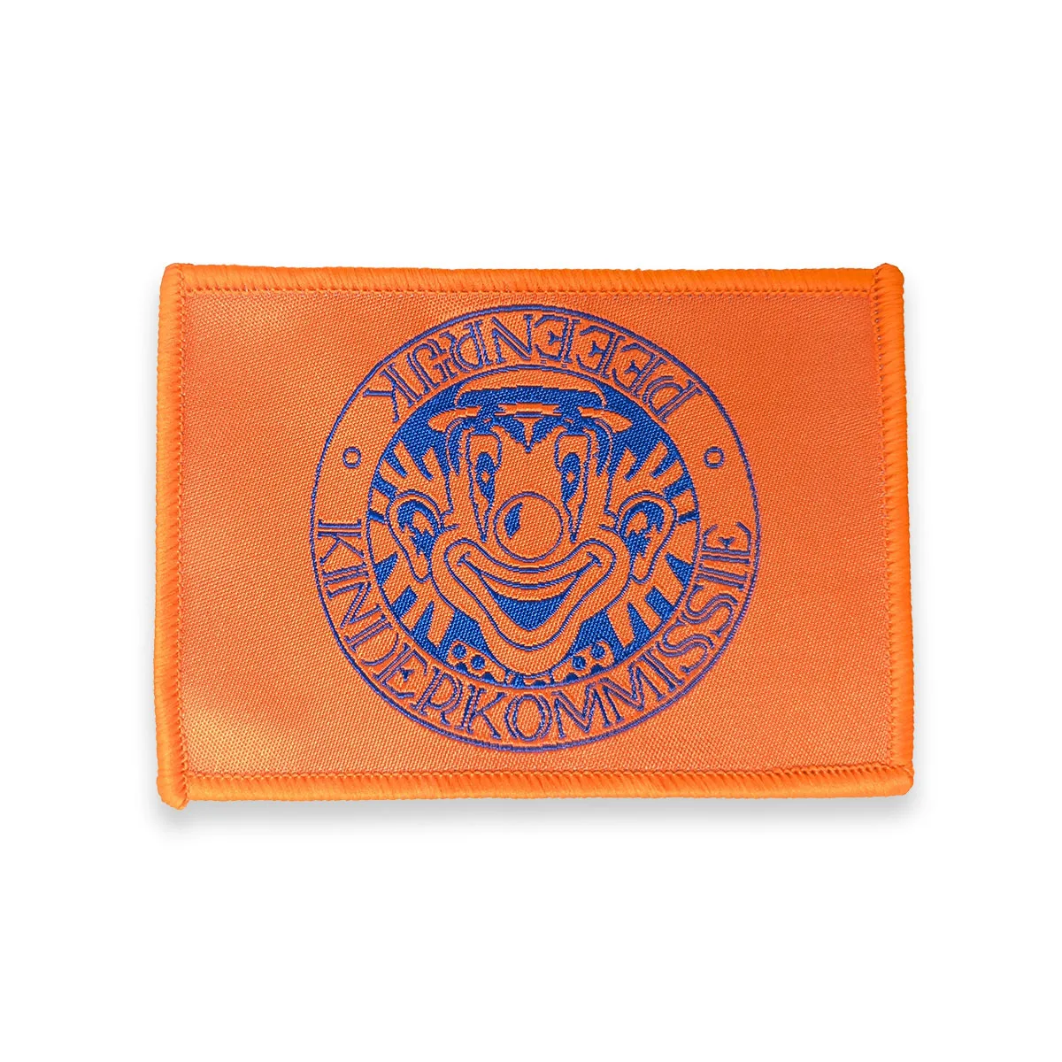 Geweven strijkembleem met de vlag van de Kindercommissie. Embleem is voorzien van een strijklaag waardoor deze eenvoudig te bevestigen is op je carnavalskostuum.
