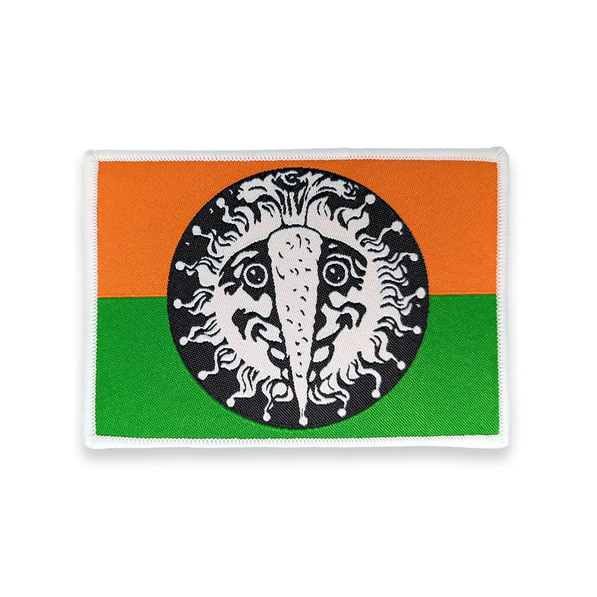 Geweven strijkembleem van de Peeënvlag. Embleem is voorzien van een strijklaag waardoor deze eenvoudig te bevestigen is op je carnavalskostuum.